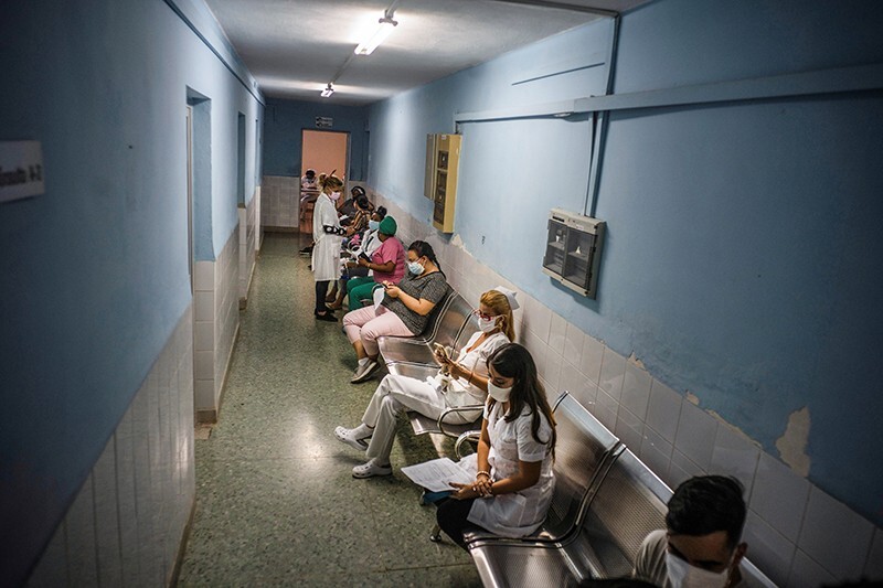 Health-care workers participating in a phase III trial wait to receive a Soberana 02 shot in March.Credit: Ramon Espinosa/Reuters