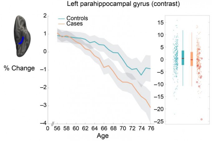 분석 결과 코로나19 환자는 뇌 여러 부위에서 크기가 줄어드는 것으로 나타났다. 안와전두피질과 해마곁이랑에서 회백질 두께가 감소했다. 안와전두피질은 인간 뇌의 4분의 1 이상을 차지하는 부위로 인지 정보와 감정 정보를 통합하는 역할을 한다. 대뇌 반구 아래에 있는 긴 이랑인 해마곁이랑은 후각, 사건 기억과 관련된 영역으로 알려져 있다. 나이가 많을수록 코로나19 감염으로 뇌 부위가 줄어드는 정도가 더 큰 것으로 나타났다.